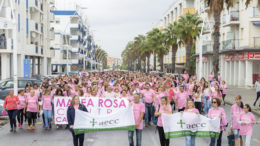 Isla Cristina volvía a demostrar este domingo que es un pueblo solidario, cuando, pese a un intenso chaparrón, las calles de la localidad costera se teñían de rosa en la primera
