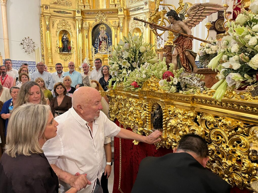Ya por la tarde, se producía uno de los momentos más esperados; la salida de la Virgen en procesión tras la «levantá» de Honor que hizo la Coral Polifónica Isla Cristina como reconocimiento a la colaboración de la formación con la Asociación Religiosa en particular y con el pueblo isleño en general.