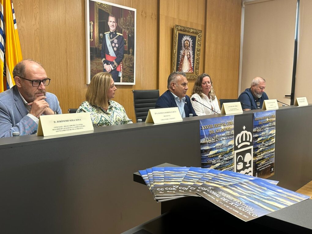El Salón de Plenos del Ayuntamiento de Isla Cristina ha la presentación de la 38ª edición del Festival Coral del Atlántico, un evento cultural de referencia que reúne cada año a formaciones vocales de dentro y fuera de la comunidad autónoma, y que se celebrará los días 10, 11 y 12 de octubre en el CIT Garum, ubicado en el Muelle Marina de la localidad.