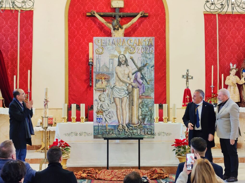 La Parroquia de Nuestro Padre Jesús del Gran Poder acogió en la tarde del sábado el acto de presentación del Cartel anunciador de la Semana Santa de Isla Cristina 2026, así como la entrega de las pastas al Pregonero de la próxima Semana Mayor, en un acto organizado por el Consejo de Hermandades y Cofradías de la localidad.