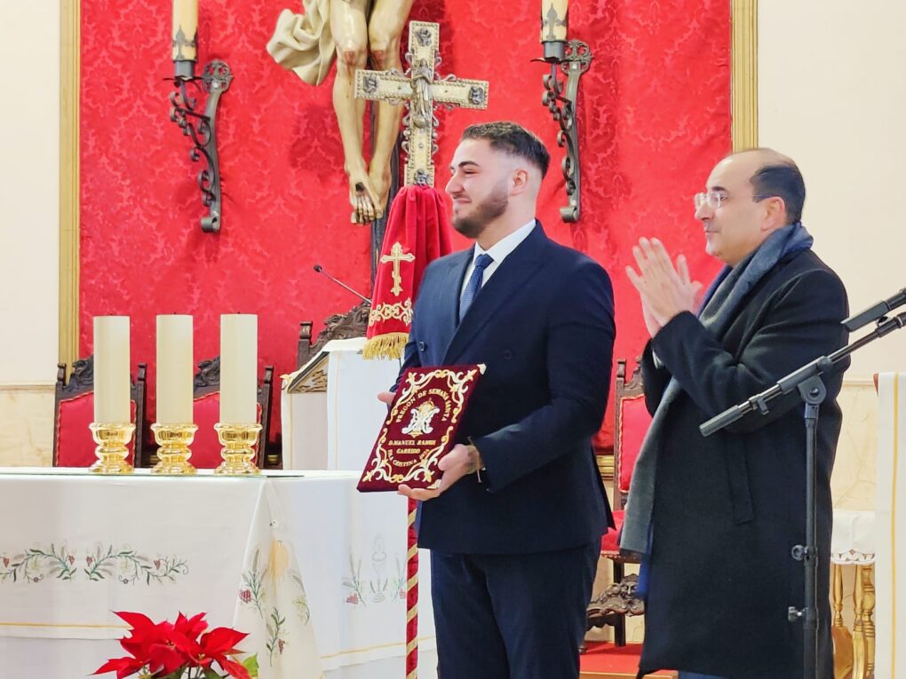 Durante el mismo acto se hizo entrega de las pastas del pregón al joven cofrade isleño Manuel Ramos Garrido, Hermano Mayor de la Sacramental de la Virgen del Mar, quien será el encargado de anunciar con su palabra la llegada de la Semana Mayor de 2026.